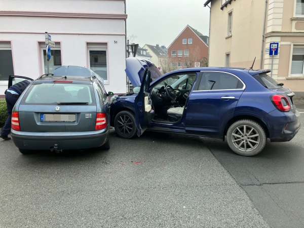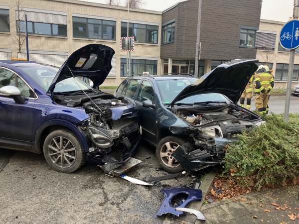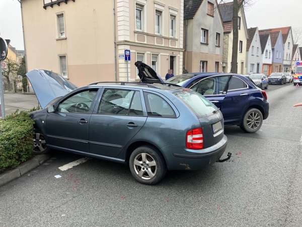 Verkehrsunfall mit zwei beteiligten Fahrzeugen. Ausgelaufene Betriebsstoffe wurden von der Feuerwehr mit Ölbindemittel abgestreut.