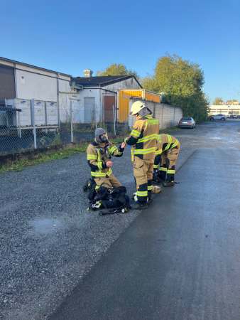 Bei Eintreffen der Feuerwehr war die Halle sowie angrenzende Räumlichkeiten verraucht. Das Gebäude wurde von den Mitarbeitern vollständig geräumt. Erste Löschversuche mit einem Feuerlöscher durch Mitarbeiter reichten nicht aus. Der Strom wurde abgeschaltet.