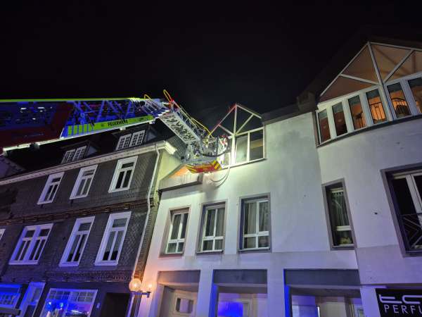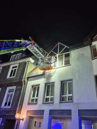 Bei Eintreffen der Feuerwehr war eine starke Rauchentwicklung im 2. Obergeschoss eines Mehrfamilienhauses erkennbar. Zur Menschenrettung und später auch zur Brandbekämpfung wurden zwei Trupps unter Atemschutz mit zwei C-Rohren eingesetzt.