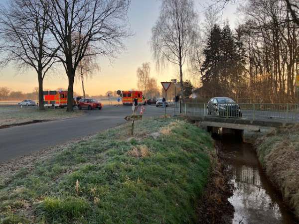 Verkehrsunfall im Kreuzungsbereich Westenholzer Straße / Delbrücker Weg / Mühlenheider Straße / Lippstädter Straße. Zwei leichtverletzte Fahrzeuginsassen wurden vom Rettungsdienst versorgt und anschließend in das Krankenhaus transportiert.