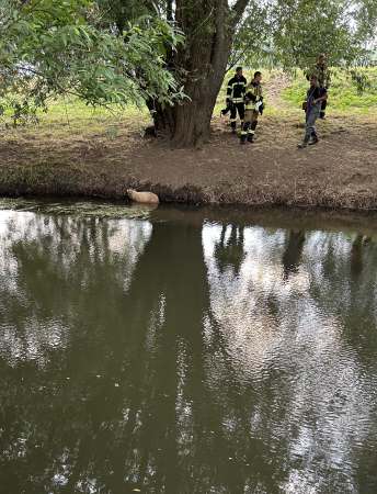 Ein Schaf steckte im Schlamm fest. Das Schaf wurde von der Feuerwehr befreit.