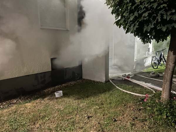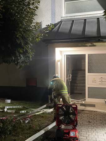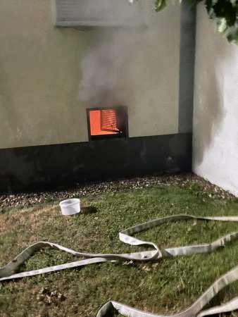 Parallel wurden zwei Trupps unter Atemschutz zur Brandbekämpfung im Keller eingesetzt. Im Keller brannten ein Trockner und Inventar.