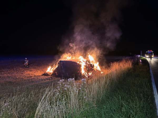 Gemeldet wurde eine Feldbrand. Bei Eintreffen der Einsatzkräfte wurde festgestellt, dass Strohballen auf einem abgeernteten Feld brannten. Nach einer Stunde wurden die Einheiten Lohe und Eickelborn nachalarmiert. Zur Brandbekämpfung wurden vier C-Rohre eingesetzt. Ein hilfsbereiter Landwirt (nicht der Eigentümer) unterstützte die Feuerwehr beim auseinanderziehen der Strohballen, um einen besseren Löscherfolg zu erzielen. Nach 3 ½ Stunden war der Einsatz für die Feuerwehr beendet.