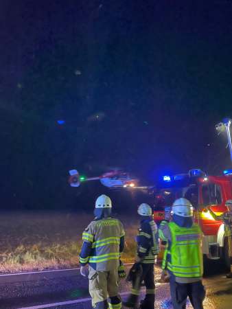 Nach der Erstversorgung durch den Rettungsdienst wurde der Fahrer an die nachgeforderte Besatzung eines Rettungshubschraubers vor Ort übergeben.