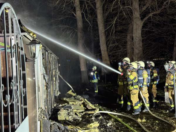 Aus ungeklärter Ursache brannte ein Holzschuppen, der sich unmittelbar an einem Gebäude befand. Zur Brandbekämpfung wurden zwei Trupps unter Atemschutz mit zwei C-Rohren eingesetzt. Ein Übergreifen auf das Gebäude wurde von der Feuerwehr verhindert. Die Verkleidung des Holzschuppens wurde geöffnet um mögliche Glutnester zu kontrollieren. Ein weiterer Trupp unter Atemschutz kontrollierte parallel die Räumlichkeiten in dem Gebäude.