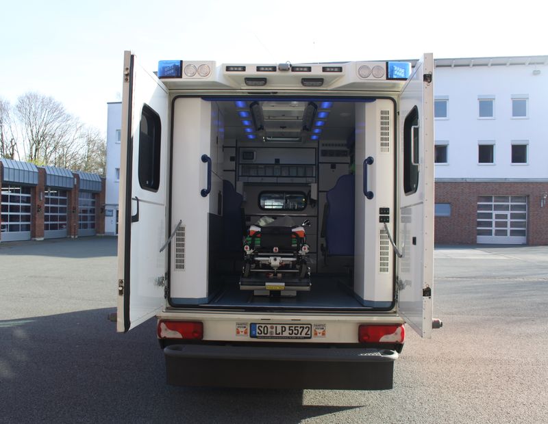 Die Koffer-Aufbauten verfügen über von außen zugängliche Stauräume, die es dem Rettungsdienstpersonal jederzeit ermöglicht, die medizinischen Gerätschaften (Notfallkoffer, Vakuummatratze, Accuvac, KED-System, Schaufeltrage etc.) ohne nochmaliges Betreten des Fahrzeuges zu entnehmen.