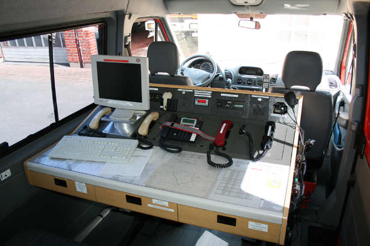 Zur Kommunikation ist dieses Fahrzeug mit 4m Funk, 2m Funk, Mobiltelefon und Mobilfaxgerät ausgestattet.