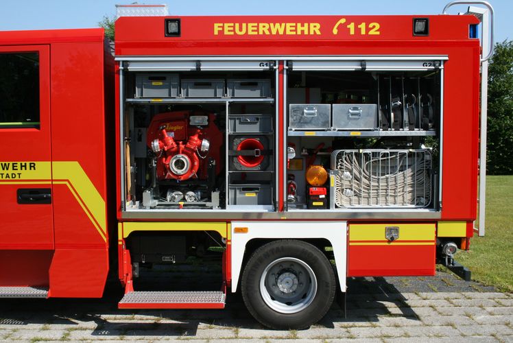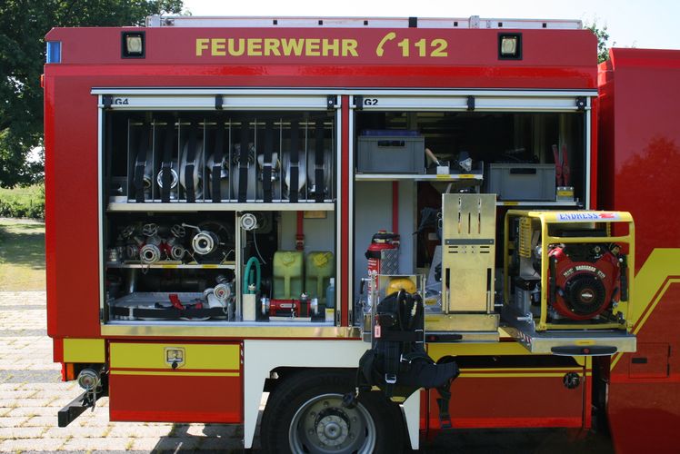 - Schaum: Lagerung für 2 Schaummittelkanister, 1 Zumischer Z4, 1 Ansaugschlauch, 1 Kombischaumrohr M4/S4