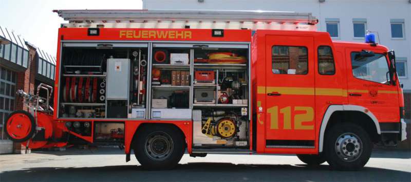 Außerdem befindet sich hier eine Ausrüstung für die Technische Hilfeleistung um z.B. Personen aus einem verunfallten Fahrzeug zu befreien (Rettungsschere und Spreizer).
